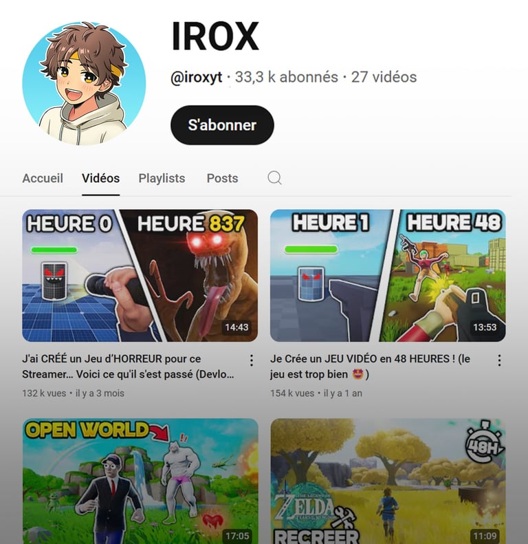 Je suis IROX, Youtubeur et développeur de jeux vidéo. Sur ma chaîne YouTube, je partage des vidéos sur la création de jeux et ici, vous pouvez découvrir toutes mes activités liées à ce domaine.